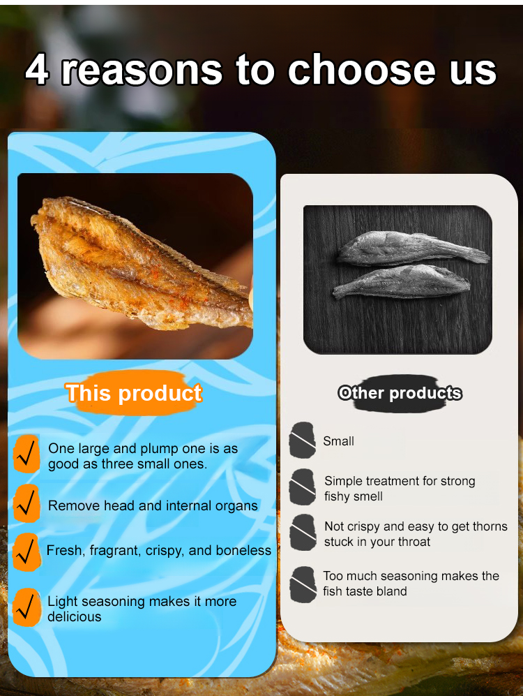 💪 Packed with High Protein & Rich Omega-3s: Boost your health with every serving. 😋 Irresistibly Crispy Texture: Even tiny fish bones transform into crunchy magic! 📦 Perfect Packaging: Ideal for lunchboxes, afternoon snacks, or late-night cravings. 🛒 Special Offer: Order now to receive double the amount—enough for the whole family! 🚀 Not satisfied? Get a 10x refund! 💵